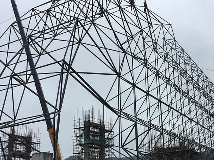5、球形阜阳网架安装时应先在柱顶弹出轴线 ,认真测量对角线尺寸,对个网格和排网架做的的测量和校正。